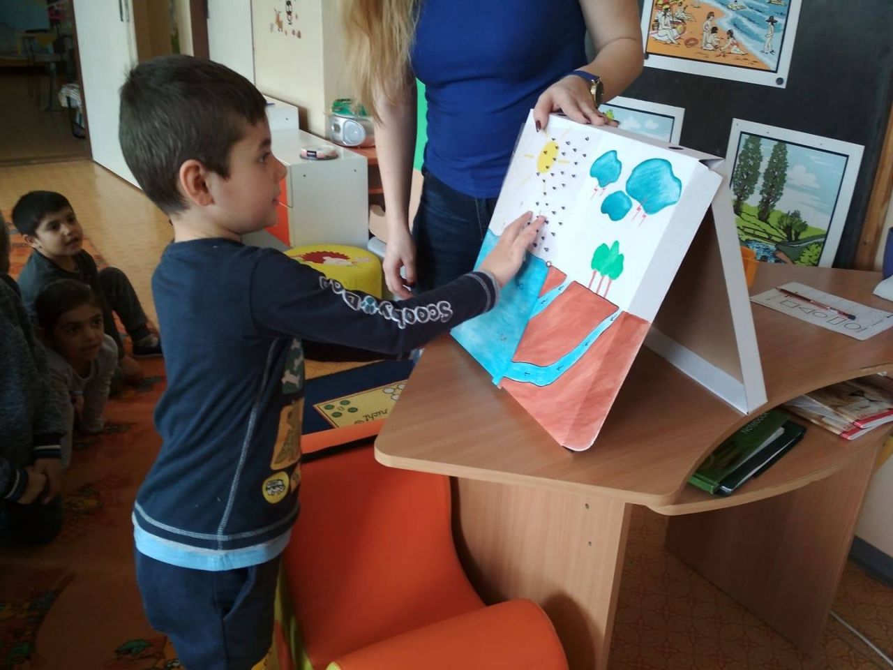 Pani učiteľka pripomenula deťom Svetový deň vody. Bol to deň pekný slnečný, no najmä náučný. Deti sa oboznámili s významom a kolobehom vody na Zemi. O tom, kde všade v prírode sa nachádza, aké má podoby, ale aj o nebezpečenstve jej znečistenia človekom. Najviac sa deťom páčila hra, pri ktorej sa zahrali na kolobeh vody.
