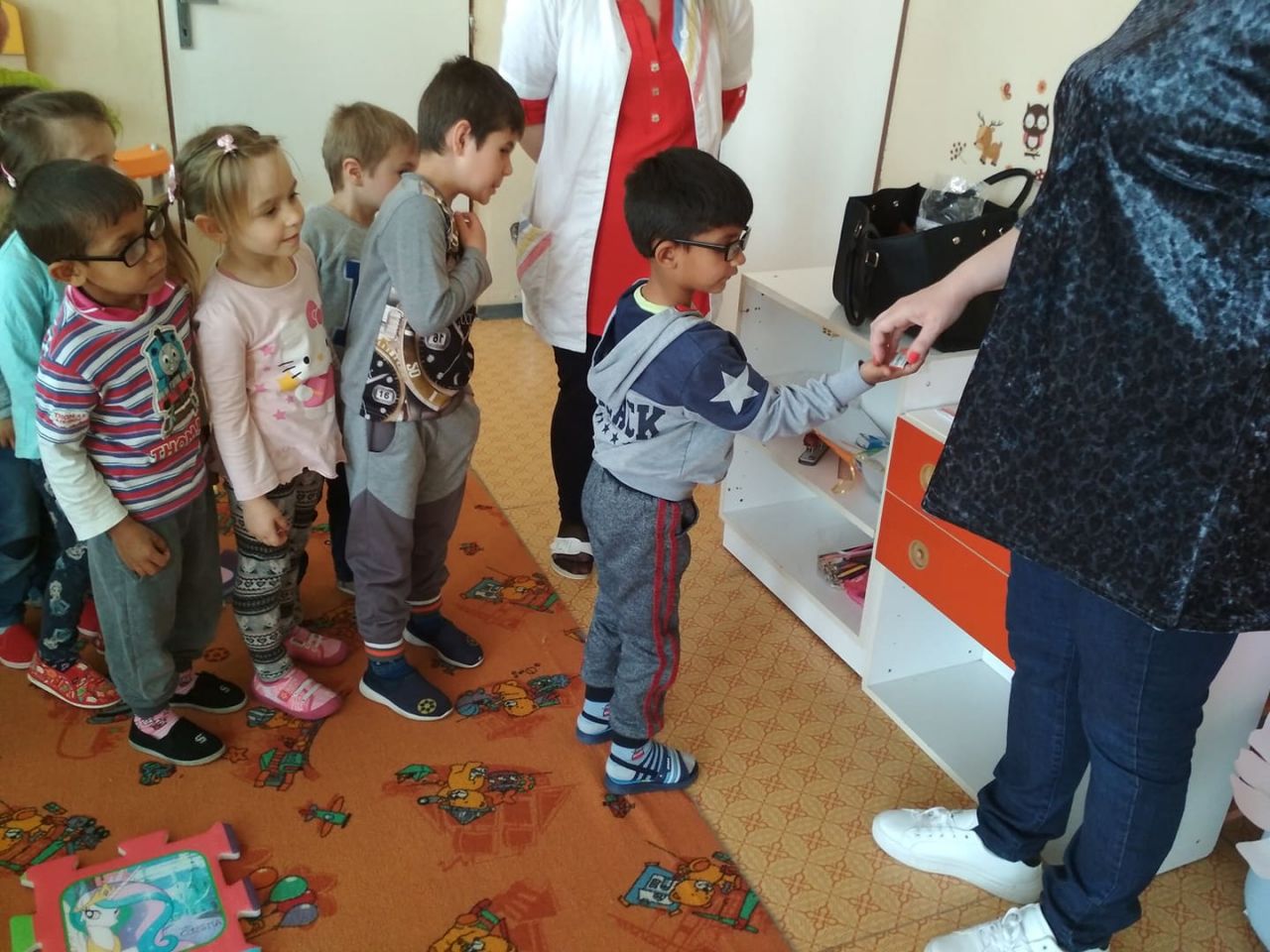 Zubná kefka maličká, to je príma vecička, na ňu dáme zubnú pastu, nech nám zdravé zúbky rastú. Návšteva stomatologičky, potešila všetky naše detičky. Všetkým deťom zúbky prezerala, zdravé veci nám darovala.