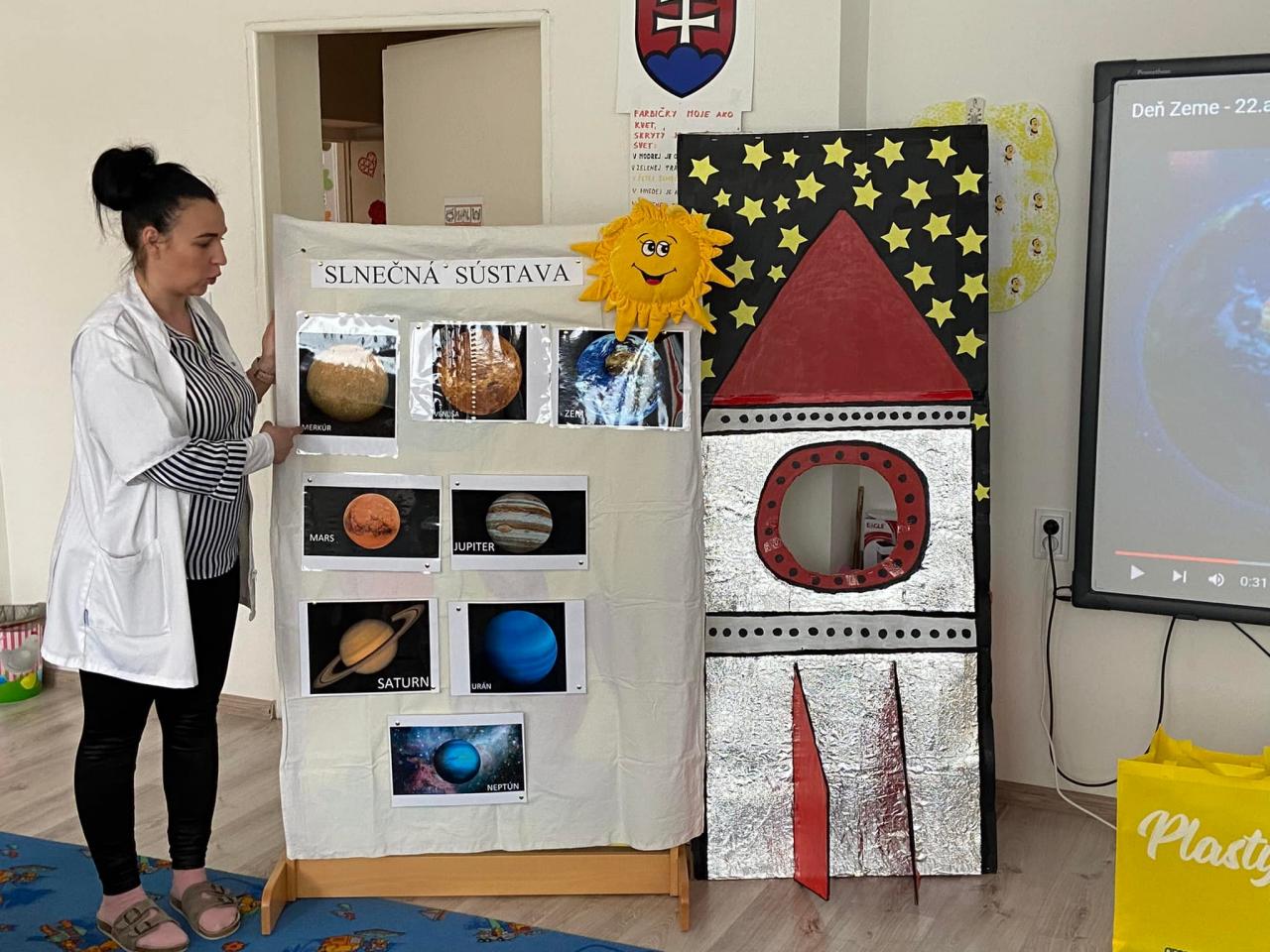 Pri príležitosti Dňa Zeme si deti obohatili svoje vedomosti o ochrane životného prostredia, o potrebe významu triedenia odpadu a dozvedeli sa mnoho zaujímavosti o planétach.
