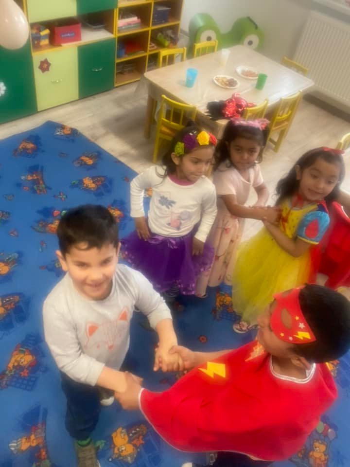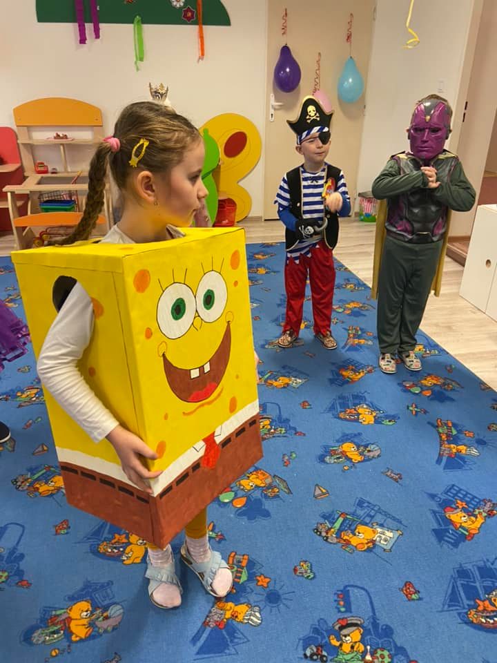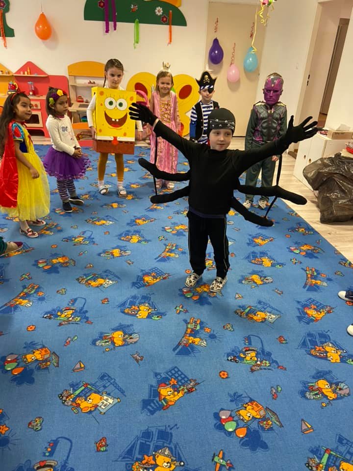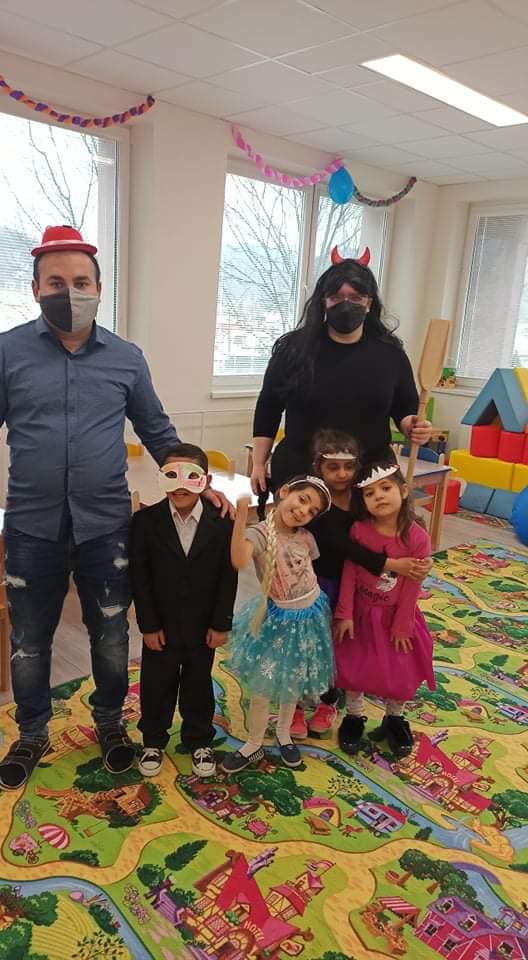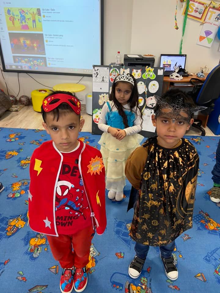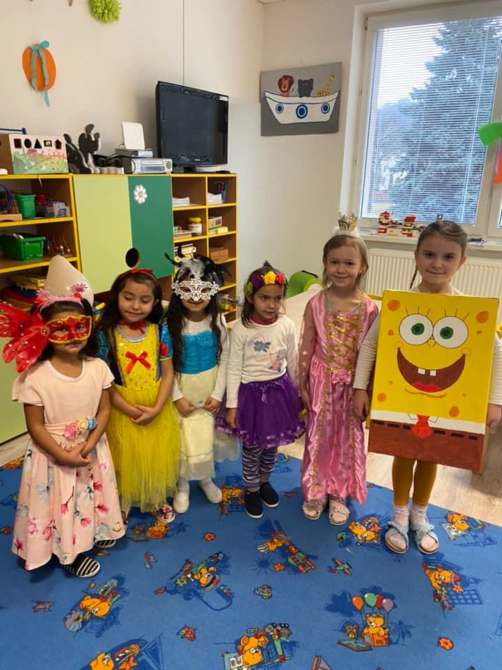 Našich škôlkarov v nádherných maskách sme pre Vás zvečnili krásnymi fotkami a samozrejme, že kolektív učiteliek a asistentov sa pridal s maskami k deťom.