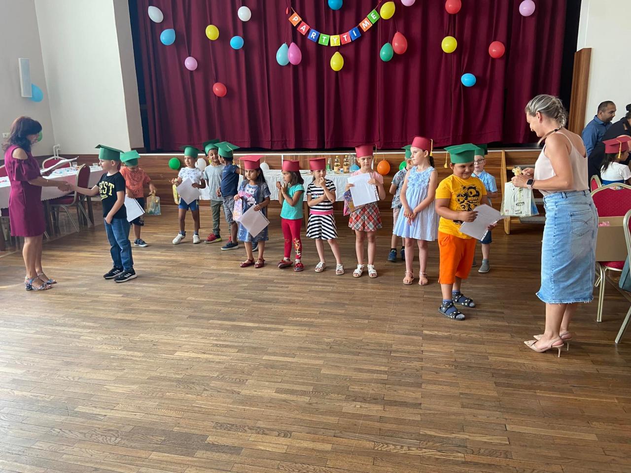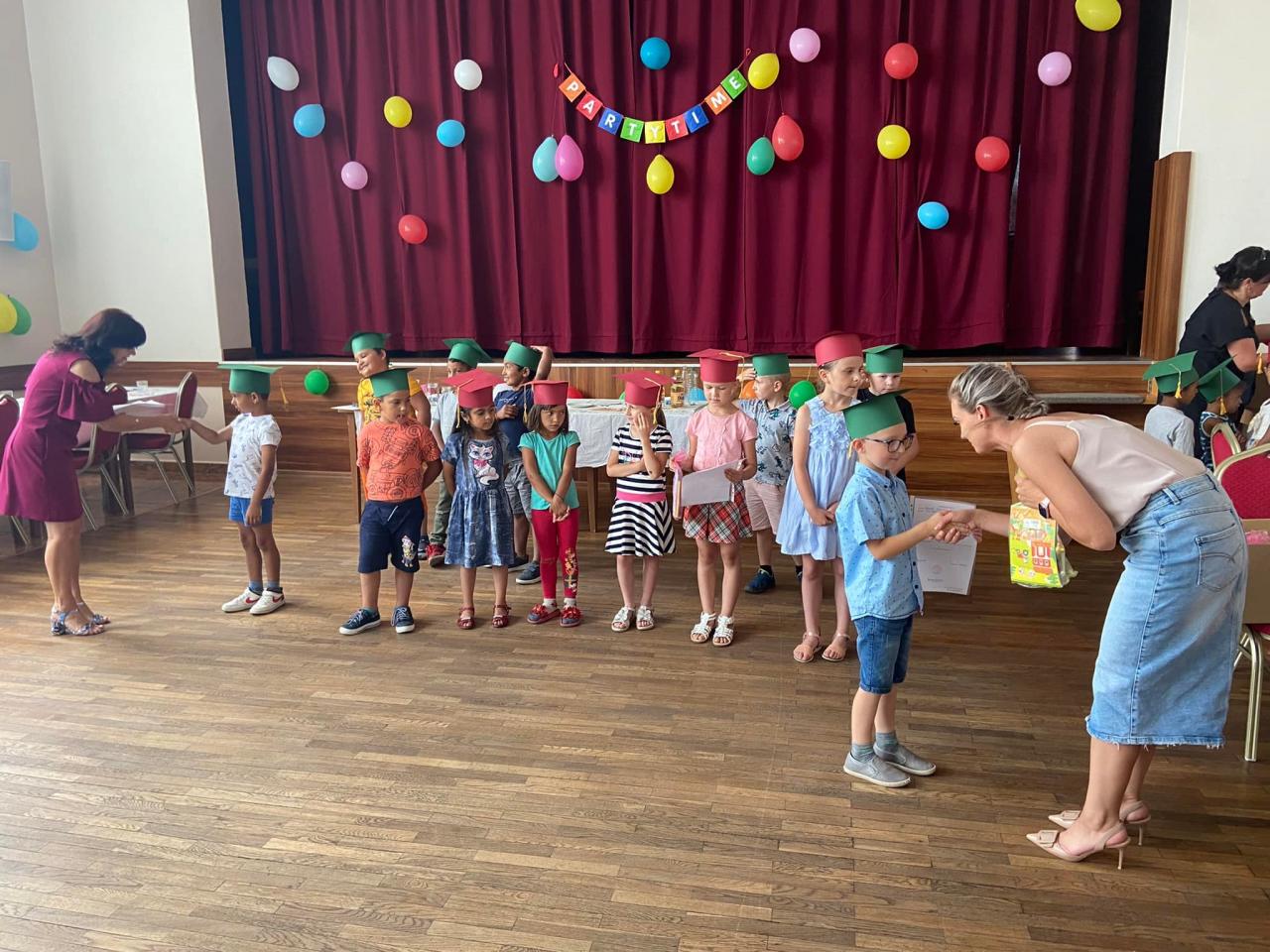 Slávnostná rozlúčka pokračovala netradične v kultúrnom dome. Predškoláci potešili prítomných krásnym vystúpením a za svoju šikovnosť a vedomosti počas celého školského roka získali Osvedčenie o absolvovaní povinného predškolského vzdelávania.
