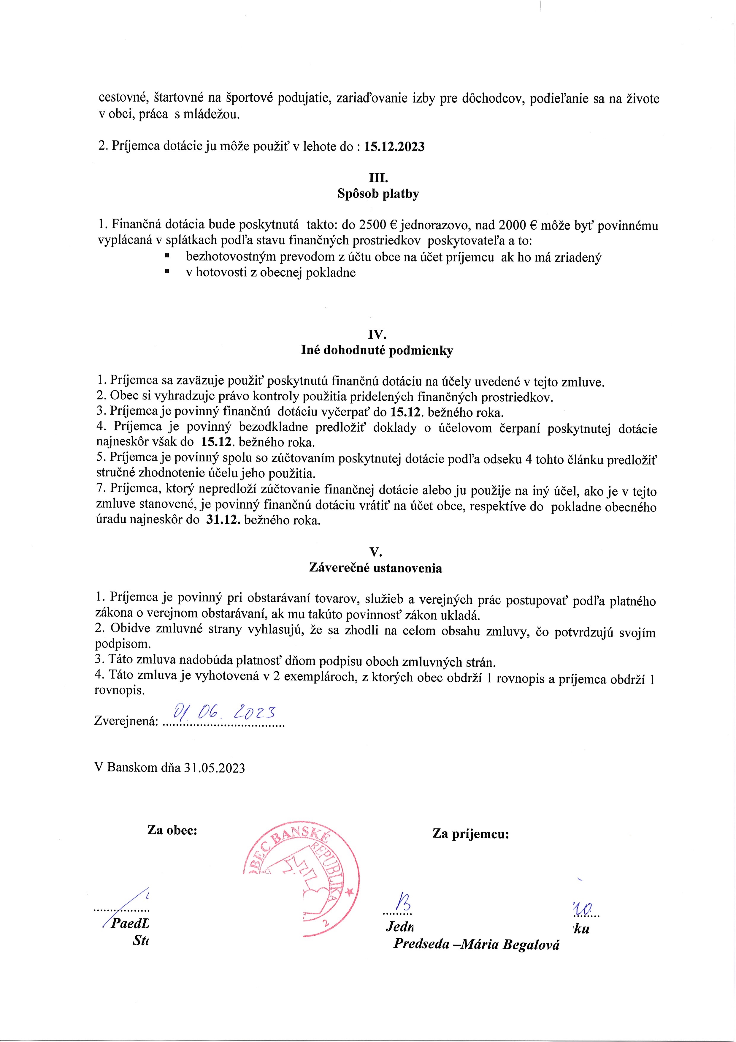 - Zmluva o poskytnutí finančnej dotácie z rozpočtu obce v roku 2023