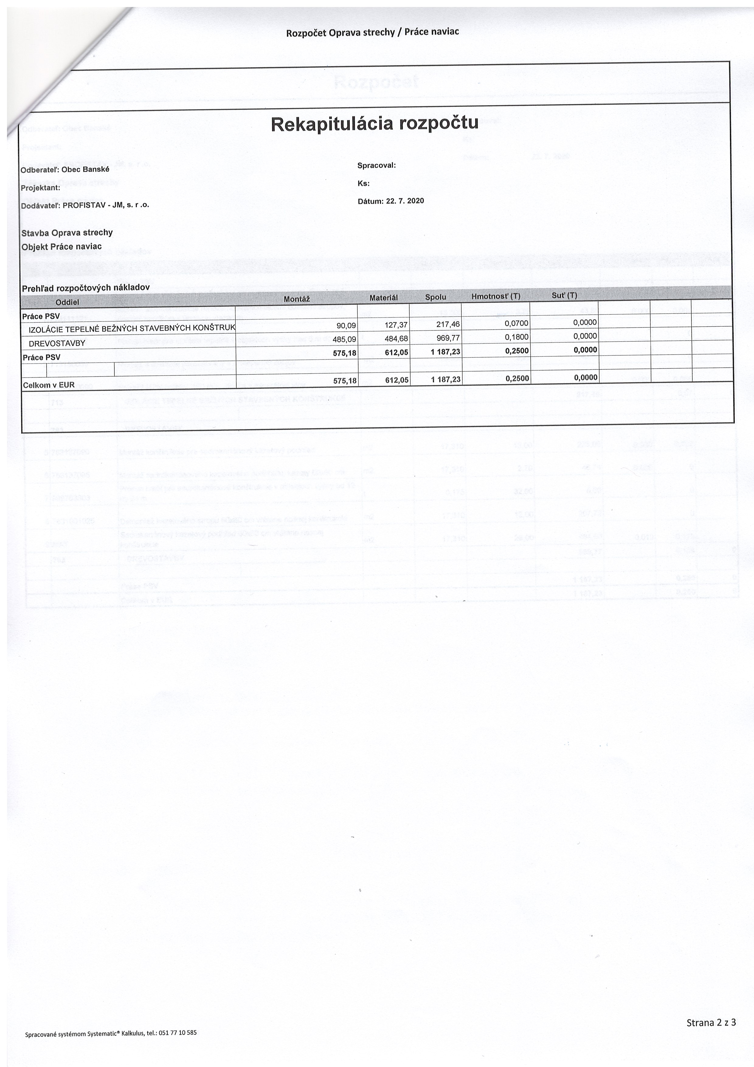 - Práce naviac špecifikované v prílohe č. 2