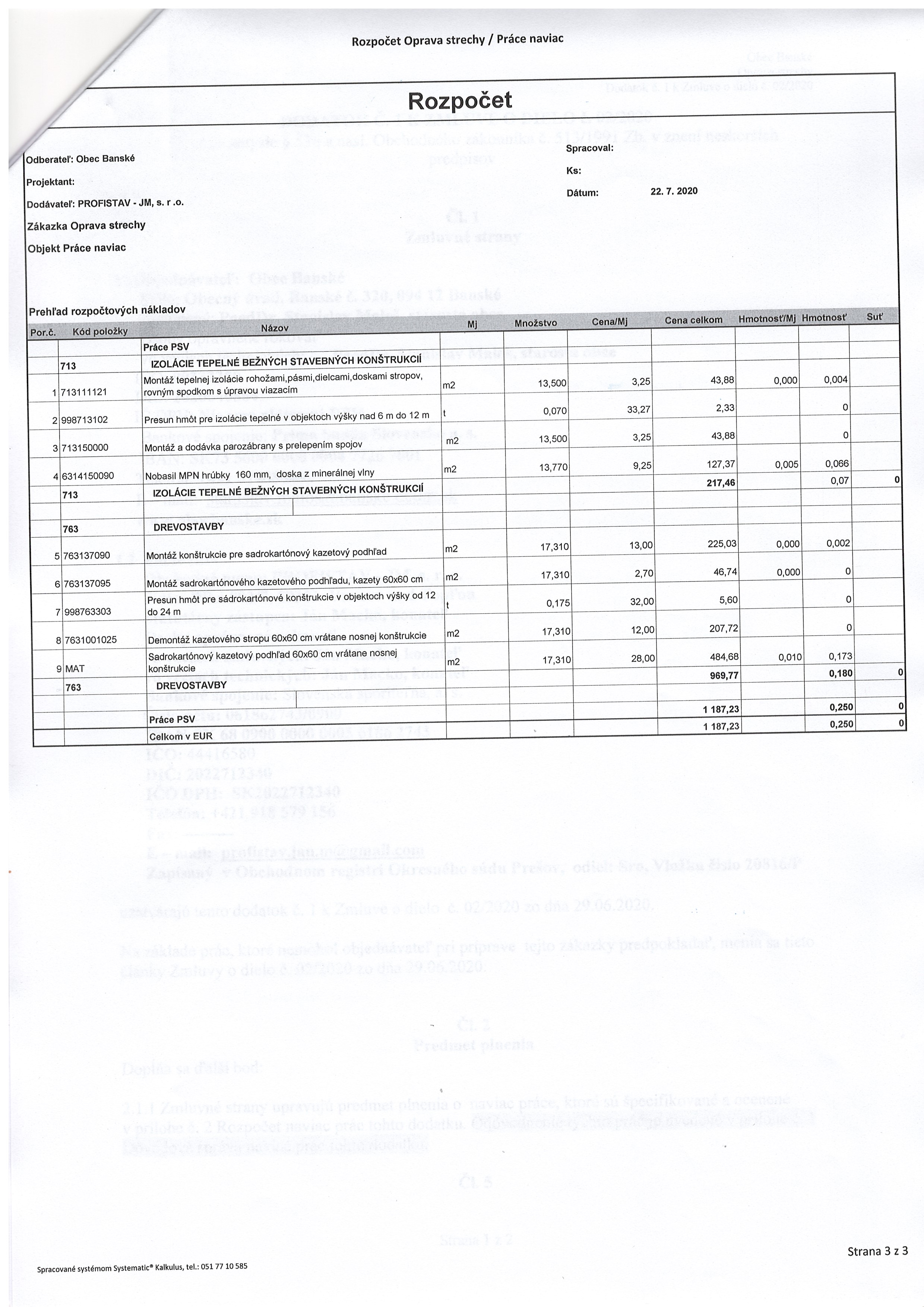 Detail zmluvy Dodatok č. 1 K zmluve o dielo č. 02/2020