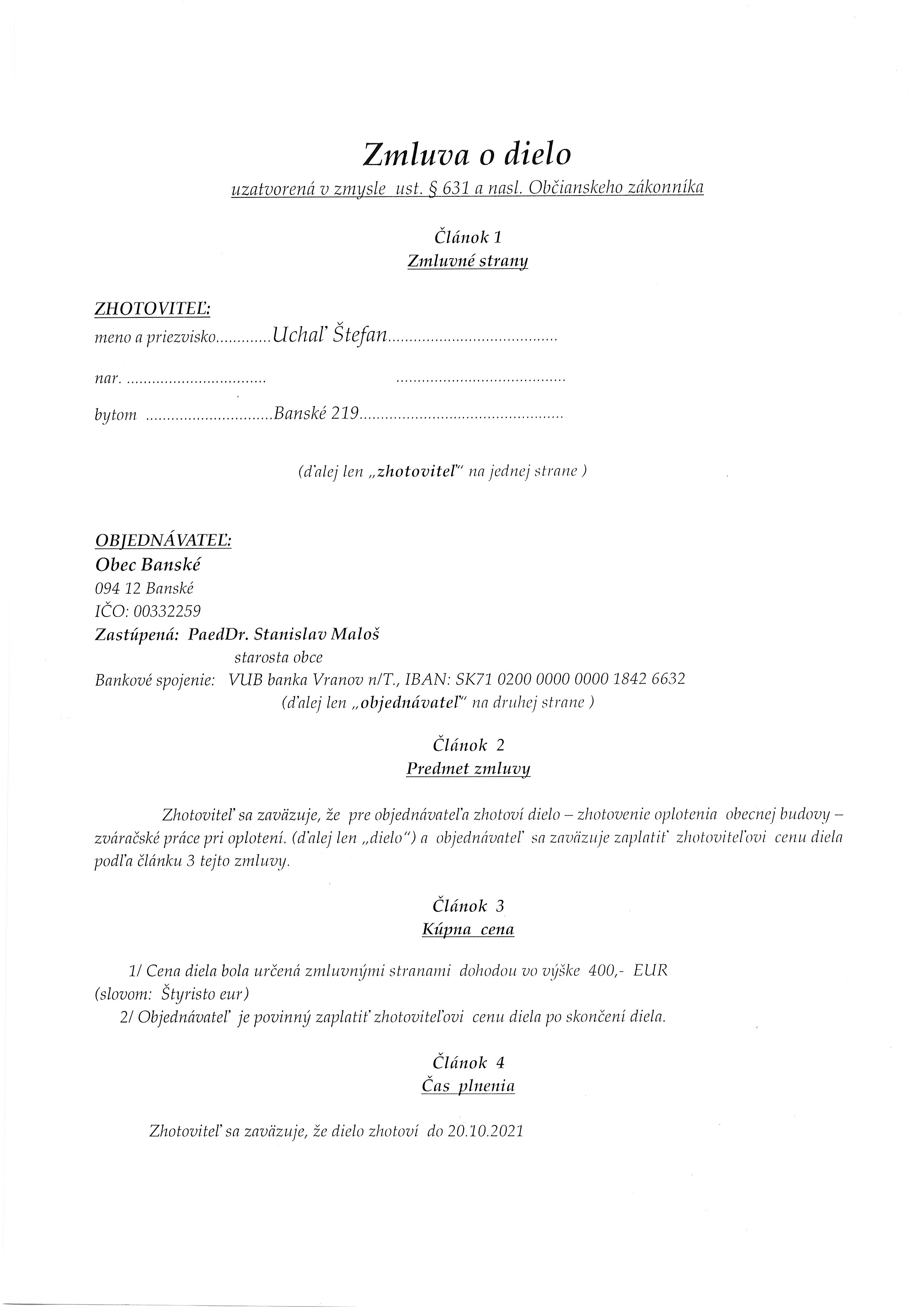 - Zhotovenie oplotenia obecnej budovy- zváračské práce pri oplotení.