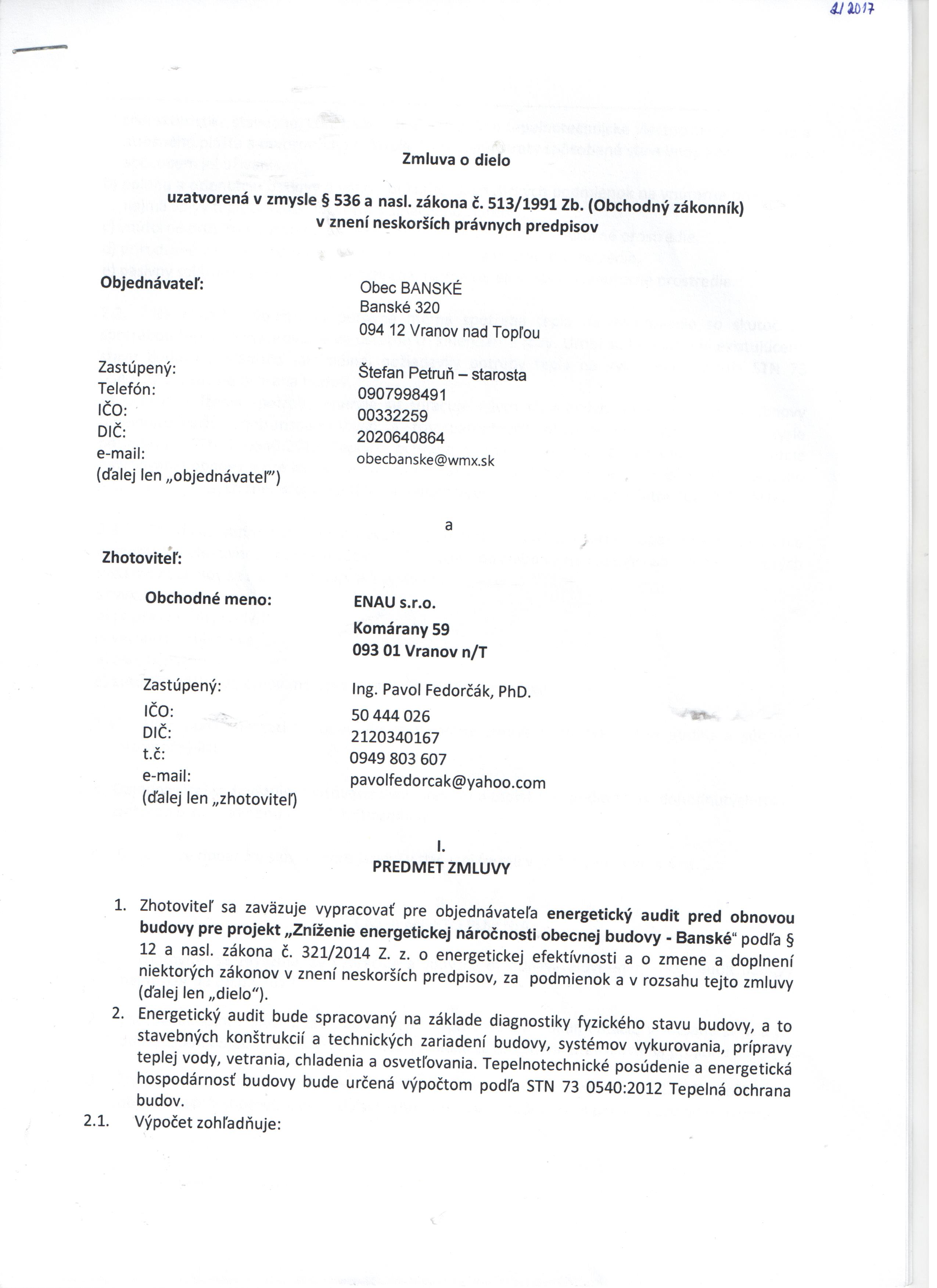 - Predmet zmluvy: