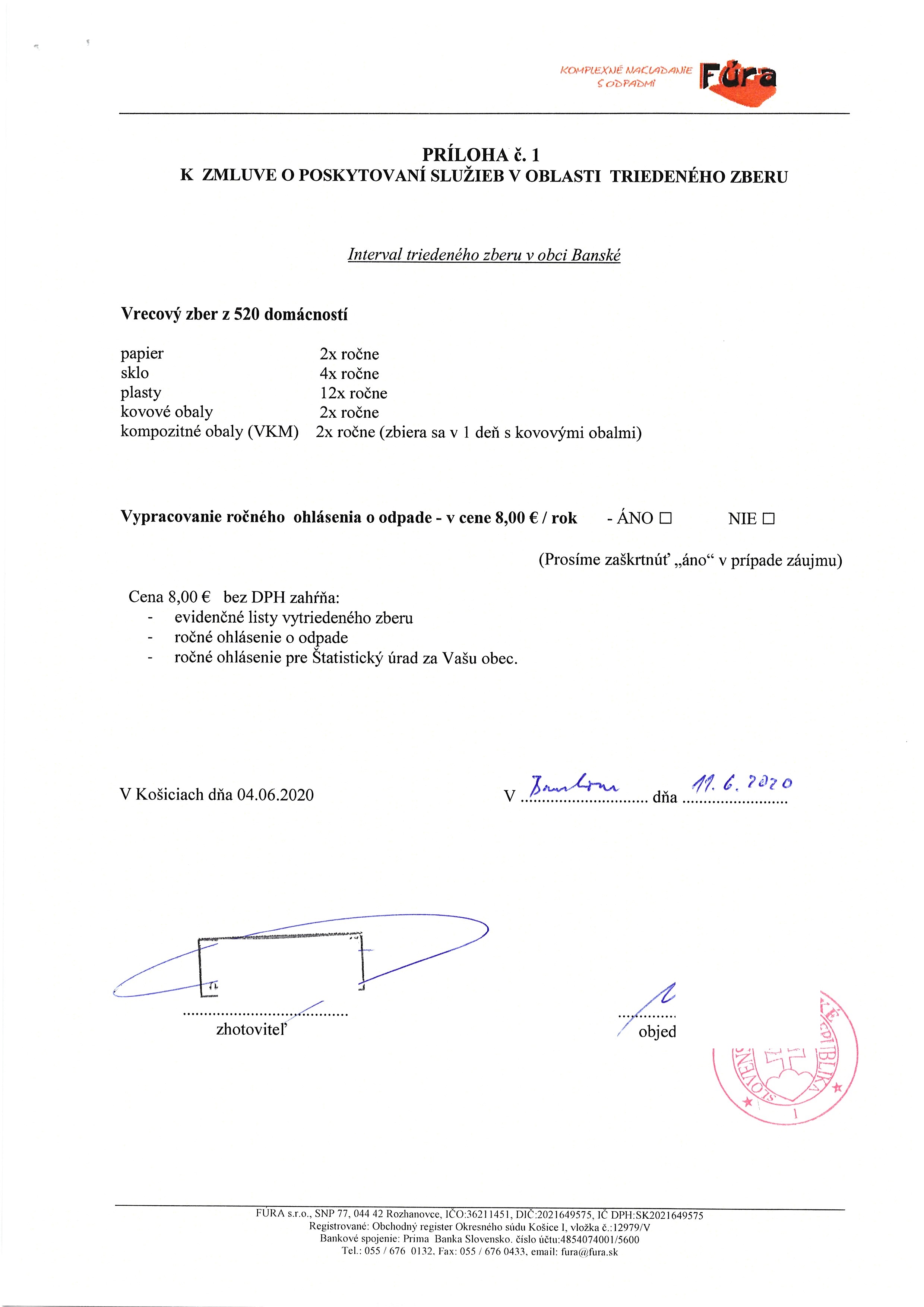 - Zmluva o poskytovaní služieb v oblasti triedeného zberu