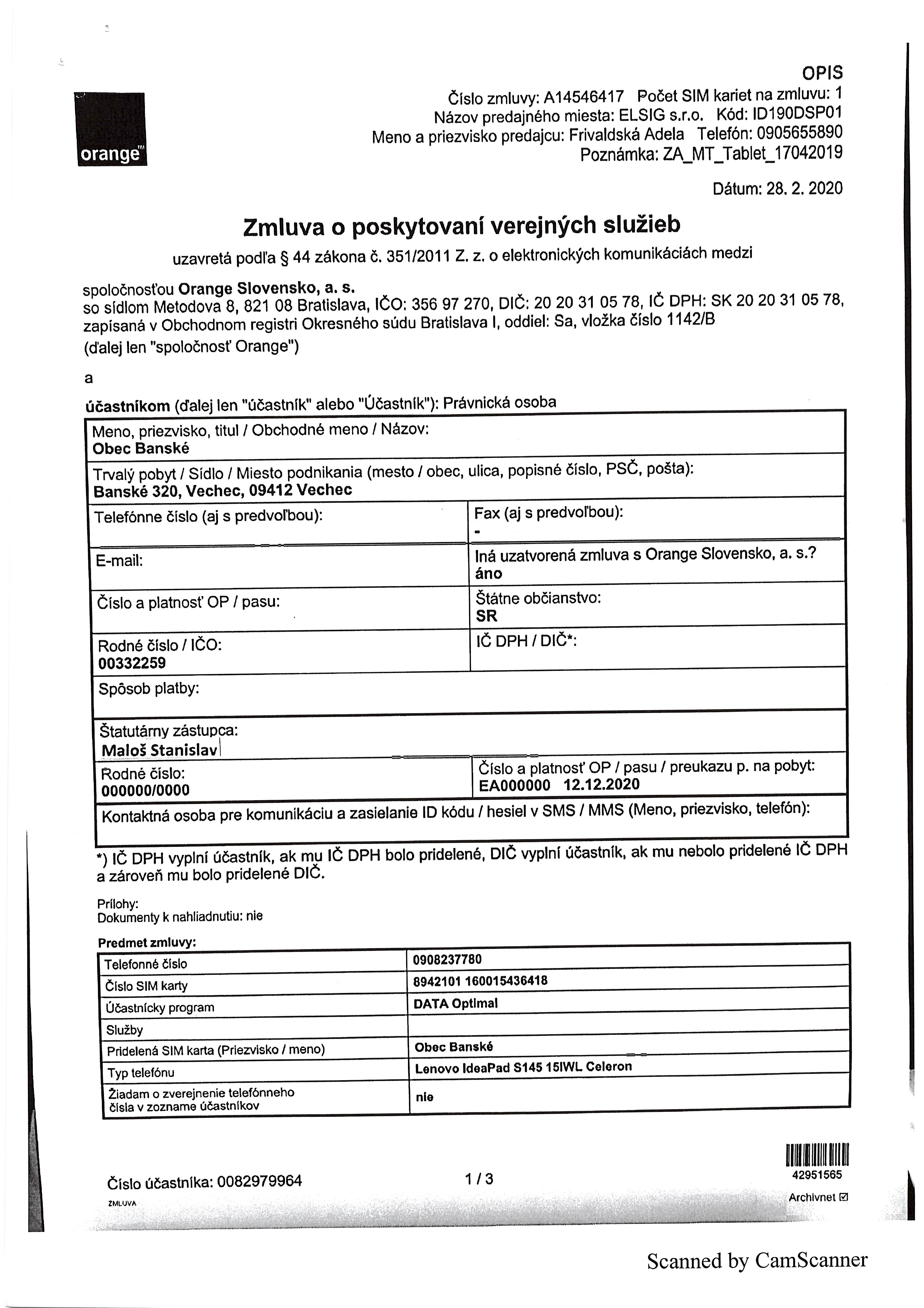 - Číslo zmluvy: